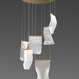 El constante movimiento siempre será señal de vida y de evolución. En esta colección hemos logrado capturar la belleza de una hoja de papel en un movimiento petrificado para llevar a tu espacio la magia de la luz fluyendo como el aire.