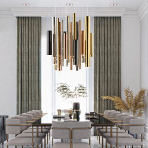 Cilindros confeccionados artísticamente en acabados oro, cromo, oro rosa y cromo negro crean esta colección de varias piezas que va a ser la sensación en cualquier habitación.